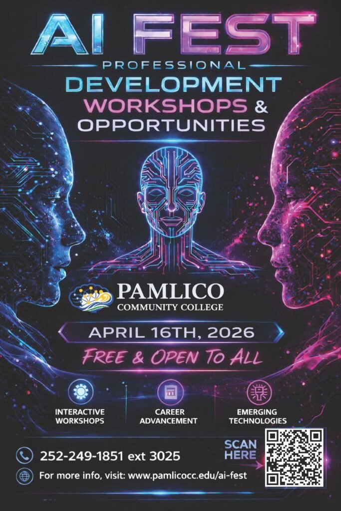 The AI Creativity Fest 2026 at Pamlico Community College is an opportunity to witness creativity in its modern form—where human imagination meets intelligent tools, and the results are genuinely surprising, beautiful, and inspiring. Whether you’re competing, visiting, or simply curious about what AI-powered creativity looks like in real life, mark April 16 on your calendar and plan to spend a few hours celebrating innovation with your community.